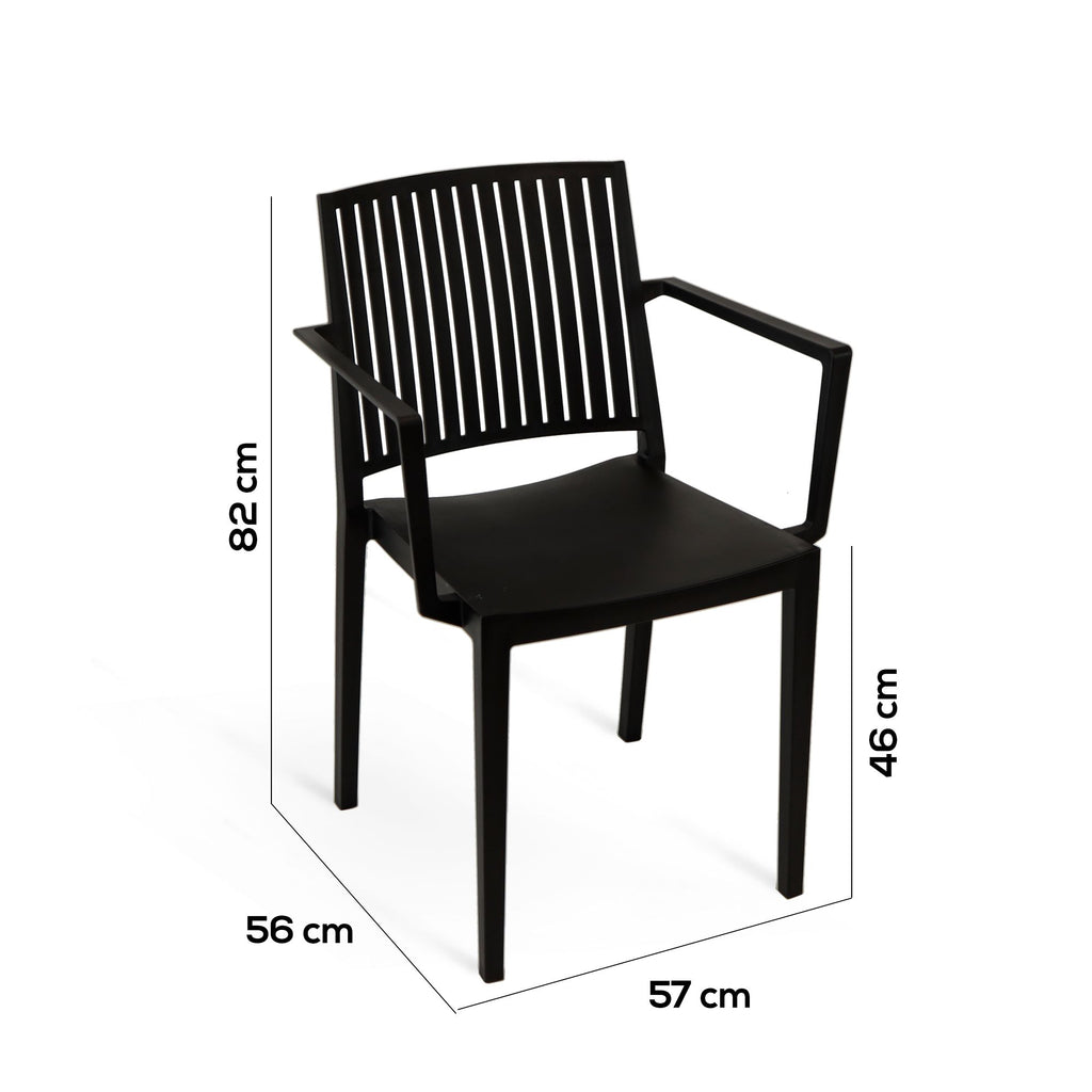 Poltrona con braccioli interamente realizzata in polipropilene camel. Dimensione: 57*56*H82 cm Altezza seduta: 46 cm Colore: Nero Materiali: Polipropilene Cura del prodotto: Detergere con panno umido e acqua tiepida, smacchiare solo con prodotti specifici
