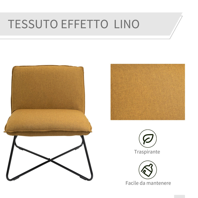 Poltroncina Imbottita 63x75x70 cm in Metallo e Tessuto Giallo