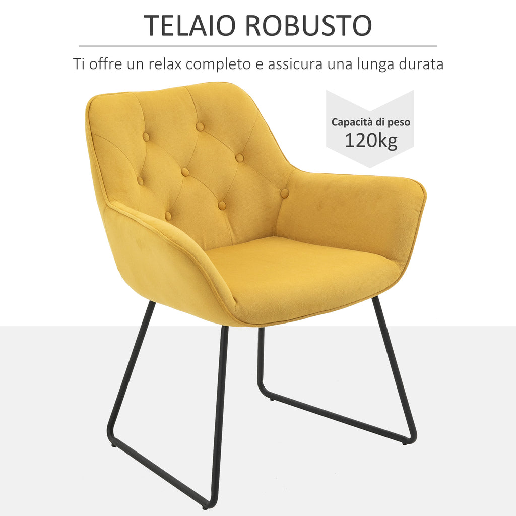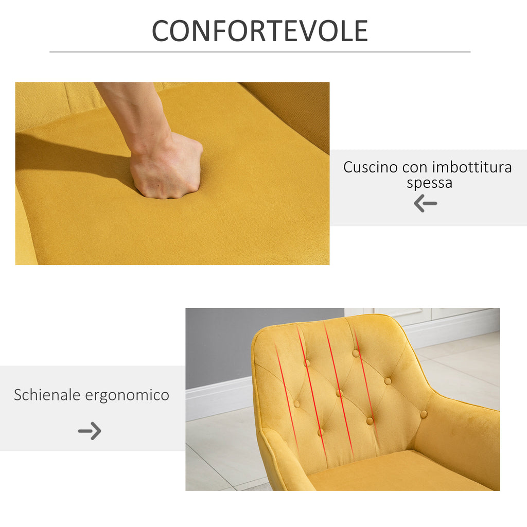 Poltroncina Imbottita 70x66,5x82 cm in Tessuto Effetto Velluto Giallo