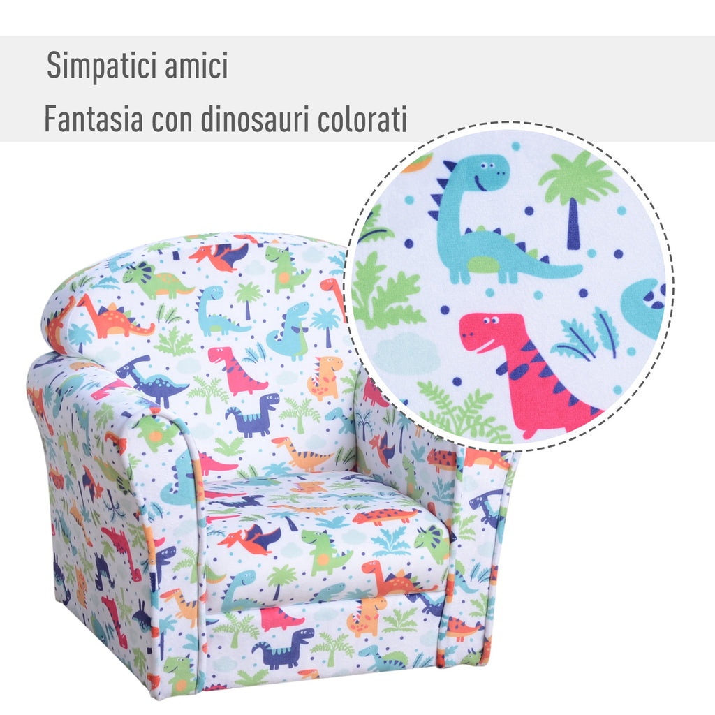 Poltroncina Mini per Bambini Bianca con Dinosauri Colorati