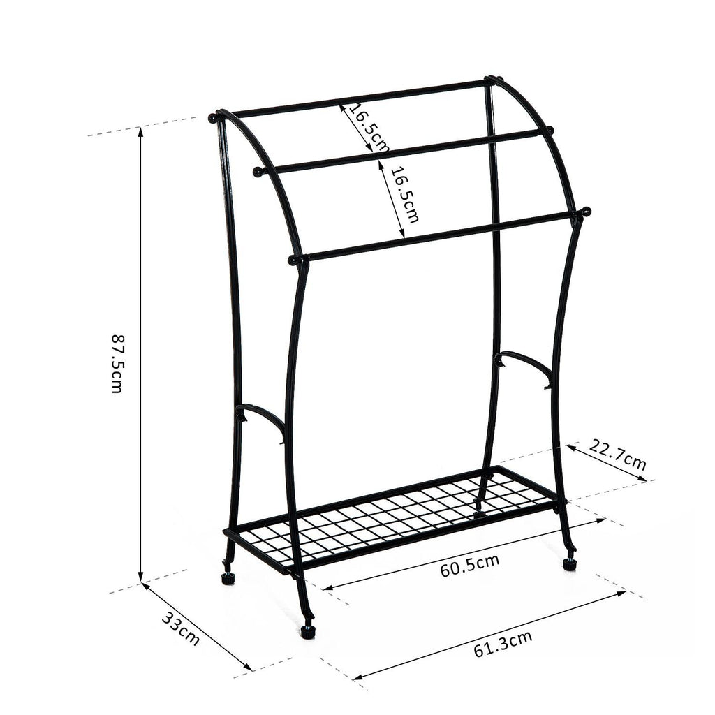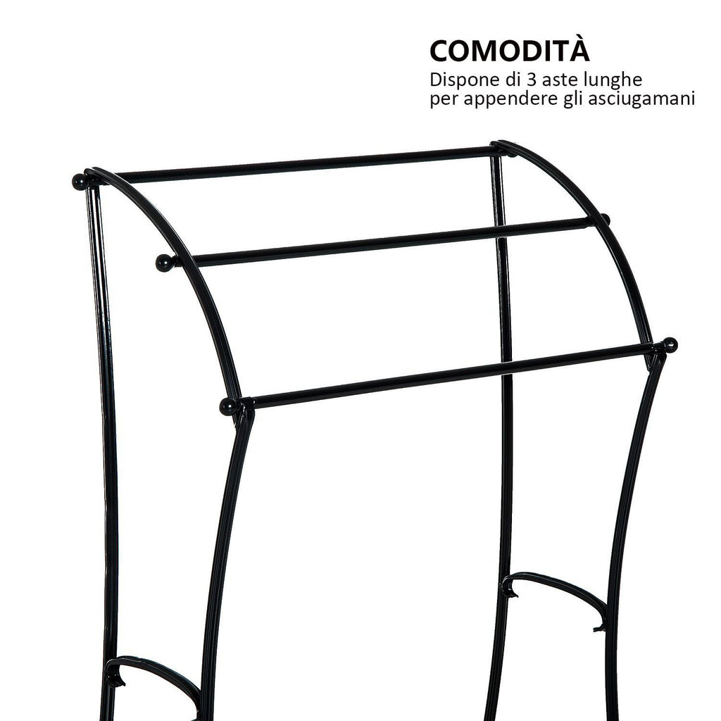 Porta Asciugamani da Bagno in Metallo 61.3x33x87.5 cm Nero