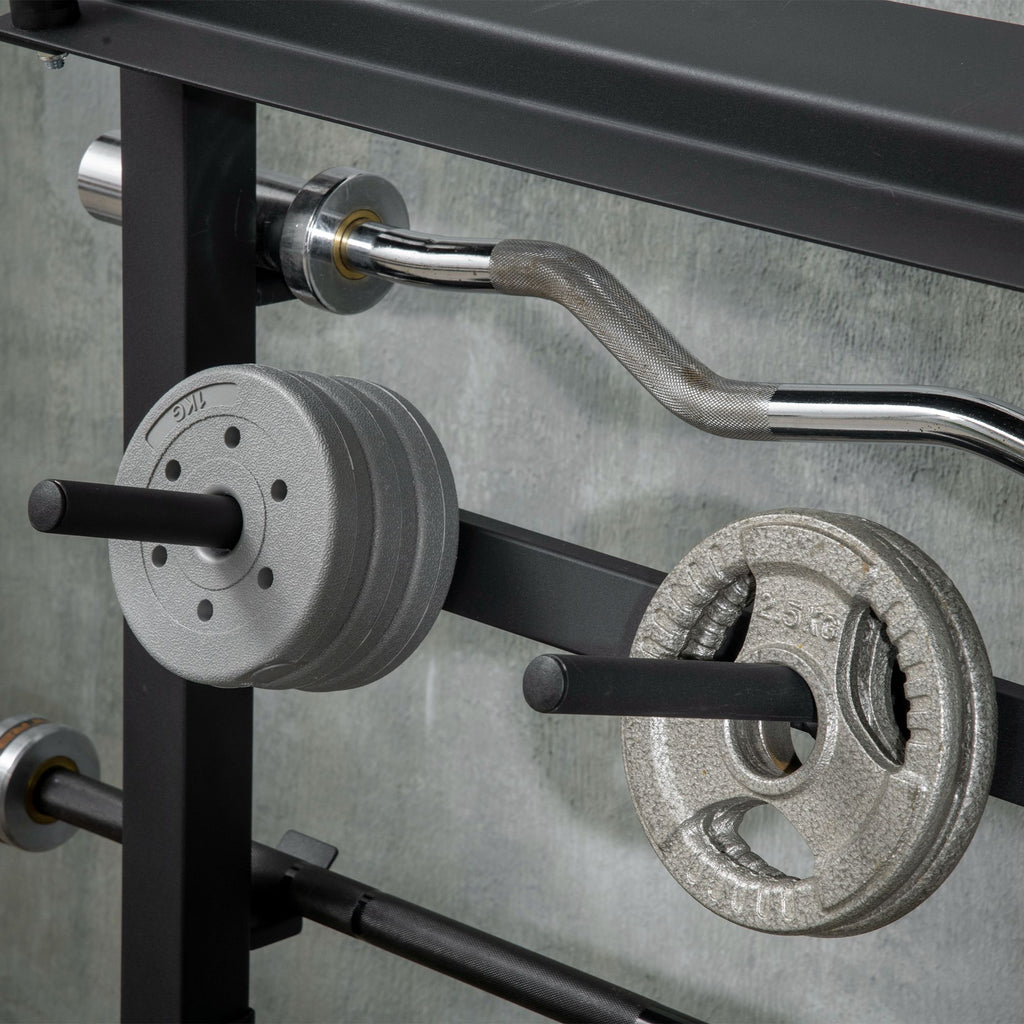 - SPAZIO PER TUTTO: Questa rastrelliera porta pesi permette di posizionare bilancieri, manubri e dischi pesi. Una soluzione unica per riporre tutta la tua attrezzatura
