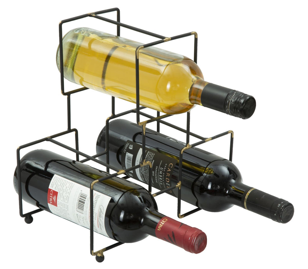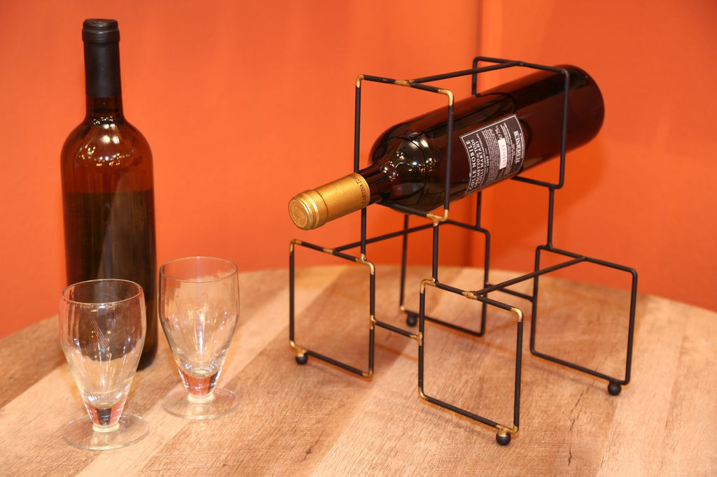 Portabottiglie in ferro da tavolo con 3 spazi. Un elemento indispensabile per completare il tuo angolo bar.