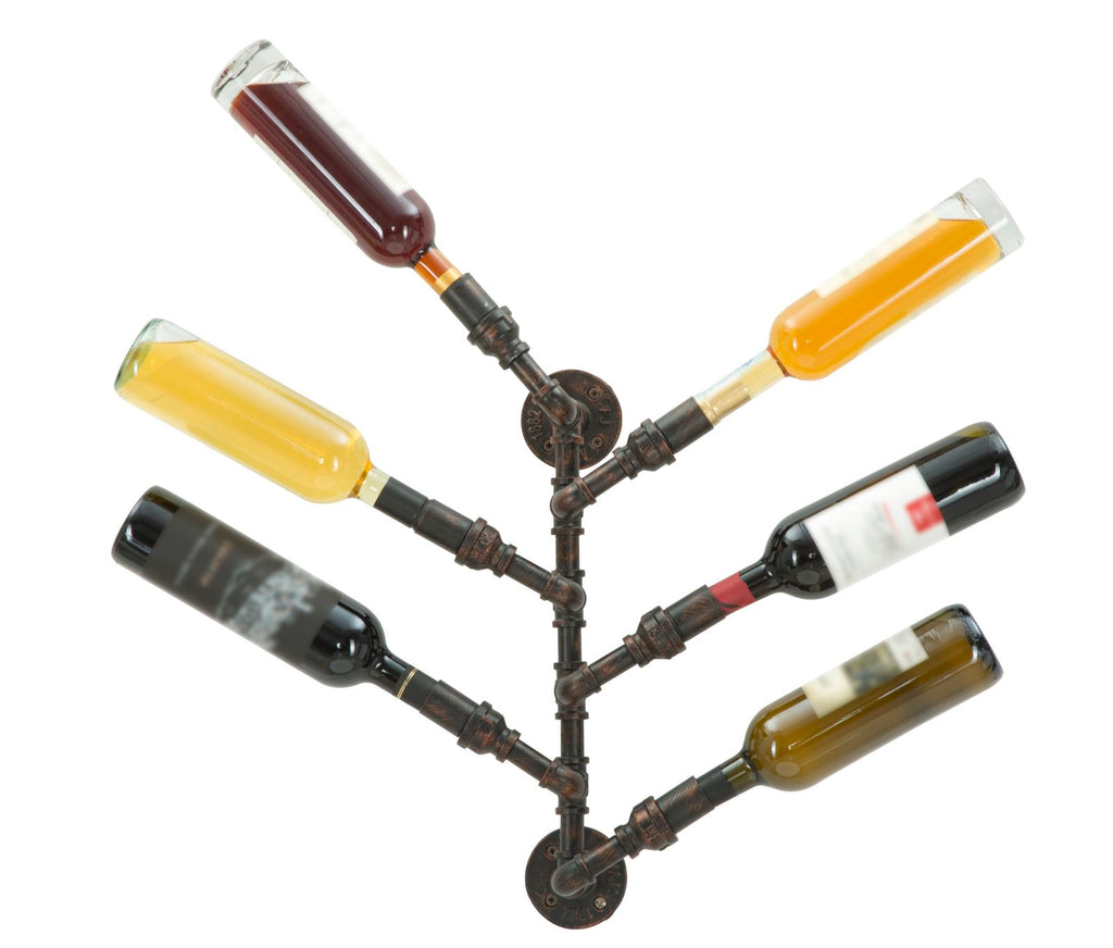 Porta Bottiglie da Muro Manhattan 6 Posti 27x15x55 cm in Ferro Nero e Rame