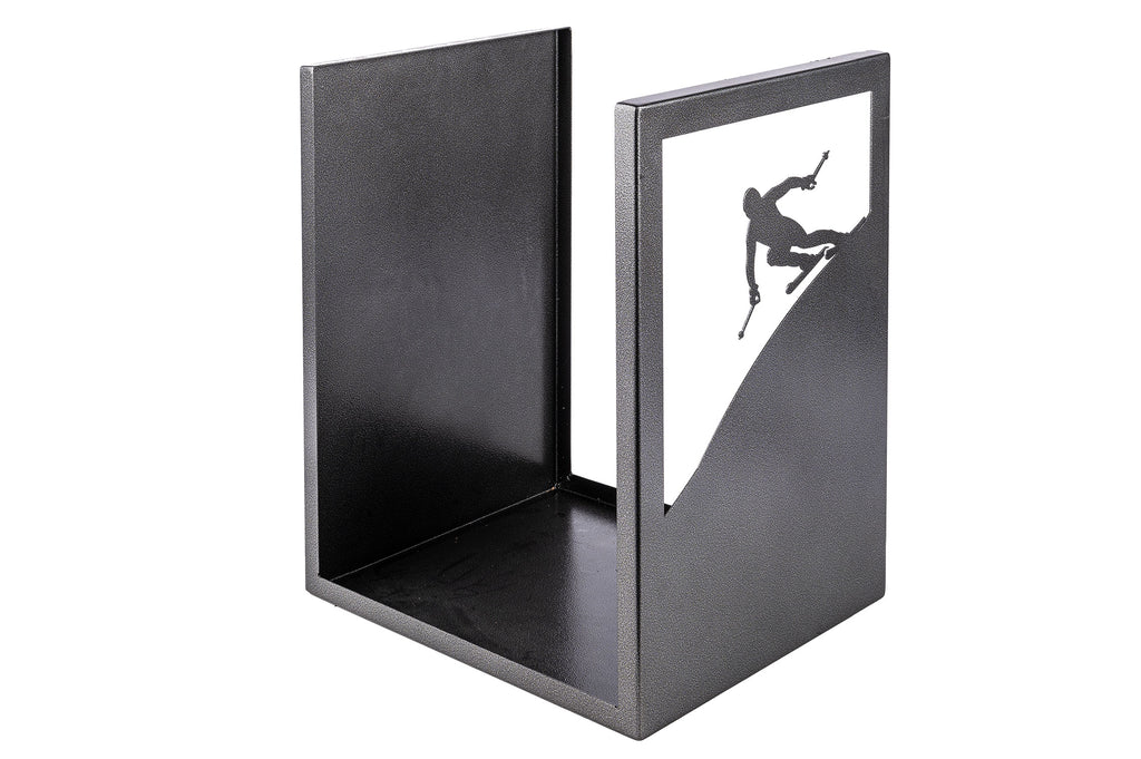 Porta Legna Sagomato Sciatore 40,5x35,5x50 cm in Ferro Verniciato Grigio Martellato - La Ferrotecnica