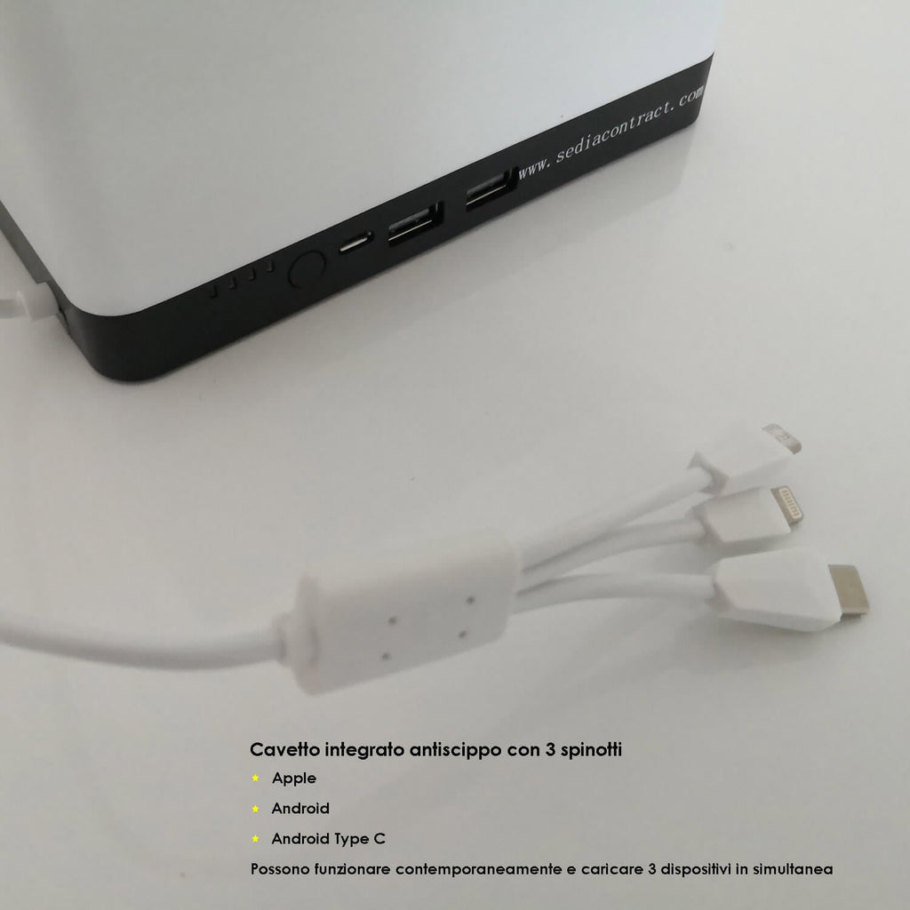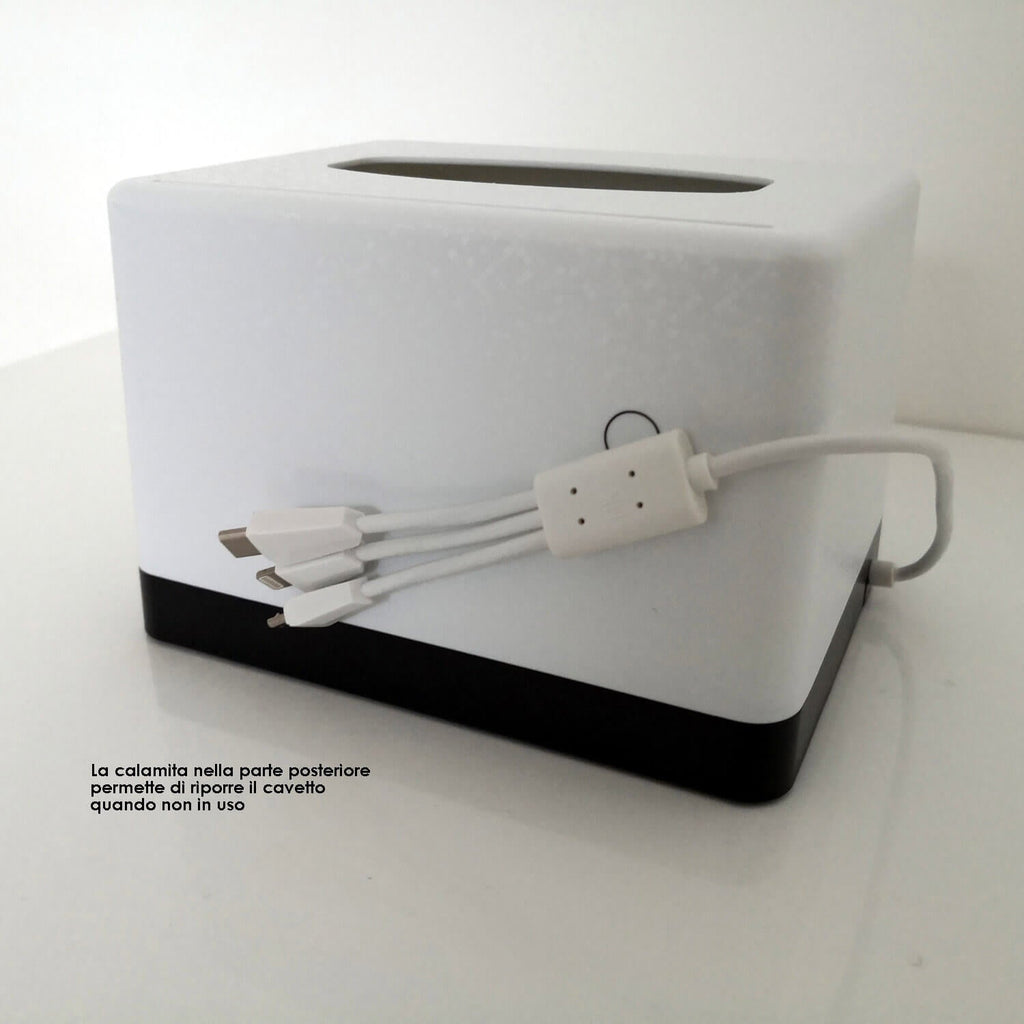 - Dotato di 3 cavetti (micro-USB, Lightning e Type-C) per ricaricare Smartphone e Tablet sia Apple che Android