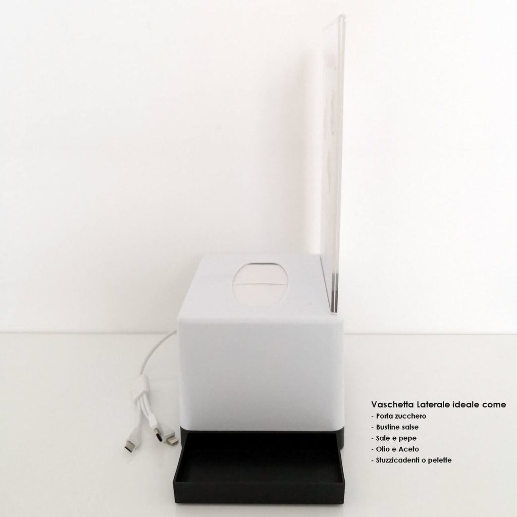 Porta Menu Dispenser Tovaglioli da Tavolo con Presa USB Ricarica Smartphone Asse Bianco