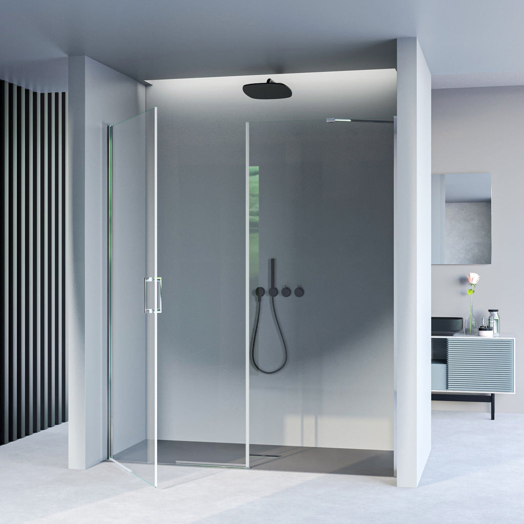 Porta Parete Doccia 1 anta Battente in Cristallo trasparente 6mm H195 Bonussi Selma Varie Misure