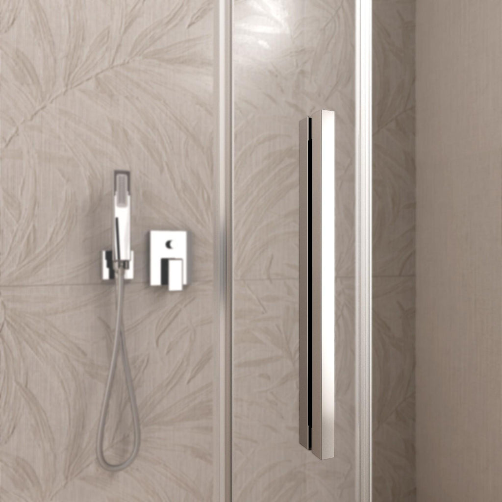 Porta doccia nicchia scorrevole in cristallo trasparente dotata di chiusura magnetica per una perfetta tenuta dell'acqua, cristallo 6 mm con trattamento anti calcare che evita le formazioni di calcare e facilita la pulizia permettendo la rimozione di impurità solo con acqua calda. Ti permette di Risparmiare non dovendo più comprare prodotti specifici. Installabile a filo pavimento o su piatto doccia. Rotelle in acciaio inox e teflon.