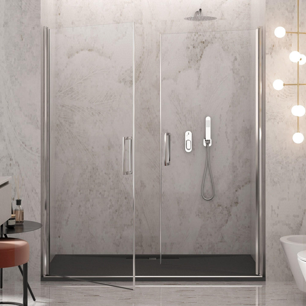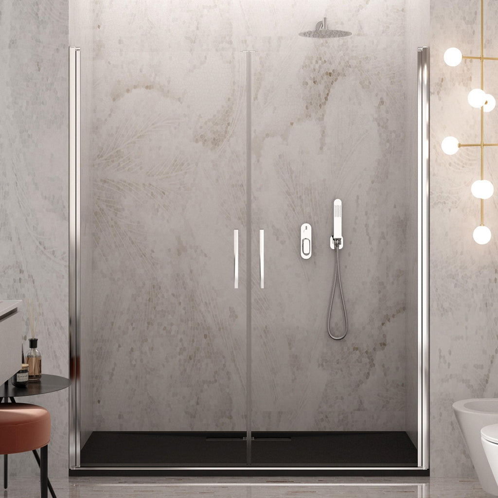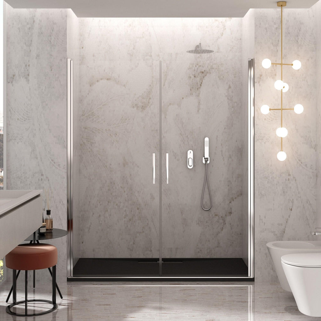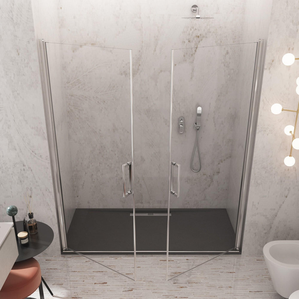 Porta Parete Doccia 2 Ante Batttenti in Cristallo Trasparente 6mm H195 Bonussi Alexia Varie Misure