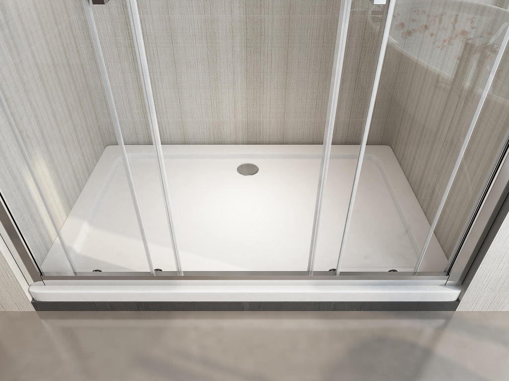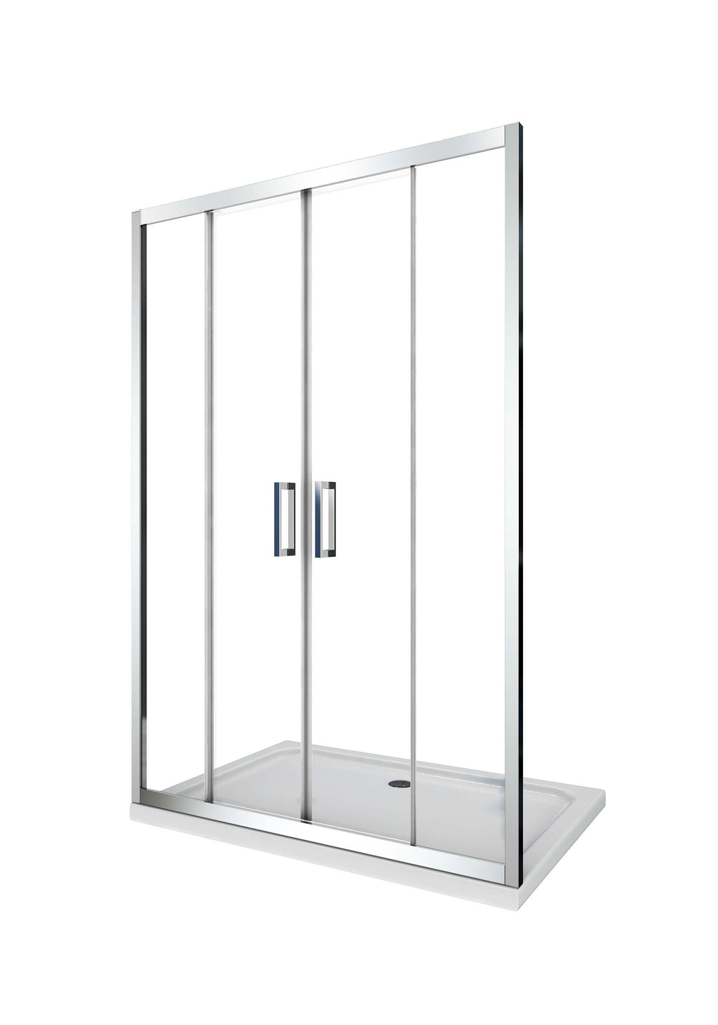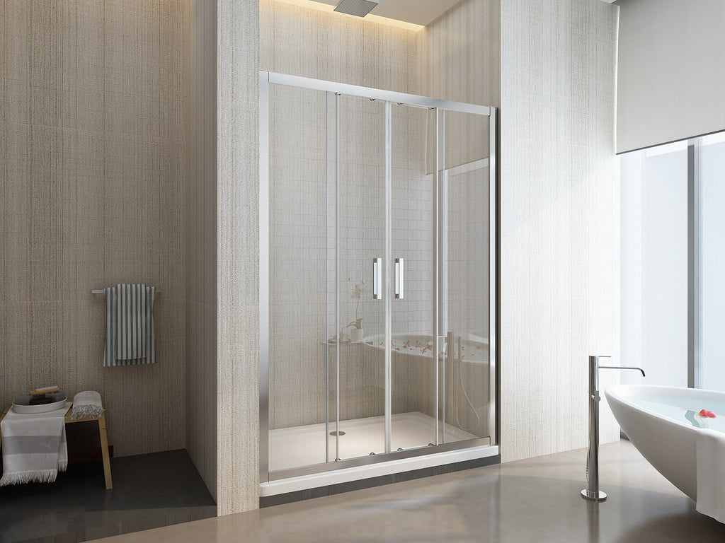 4 Ante: Porta doccia scorrevole con apertura centrale a 4 ante per installazione in nicchia.