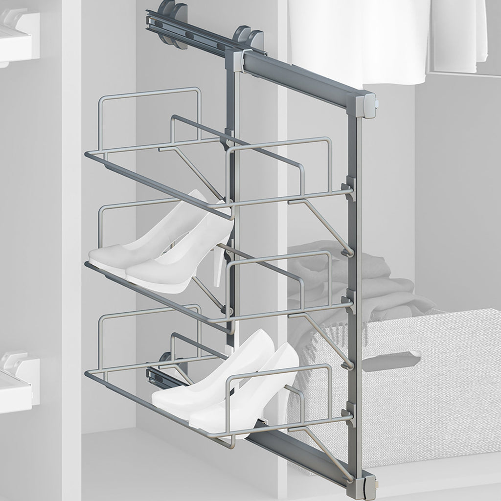 Porta Scarpe Estraibile per Armadio 3 Ripiani in Acciaio e Plastica Emuca Grigio Metallizzato