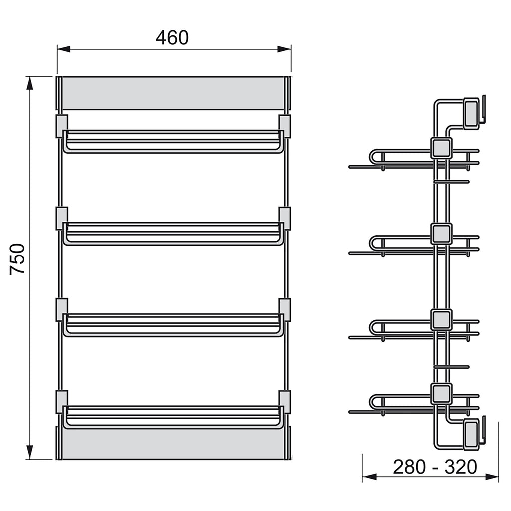 Porta Scarpe Laterale Estraibile per Armadio Montaggio a Destra in Acciaio Emuca Moka