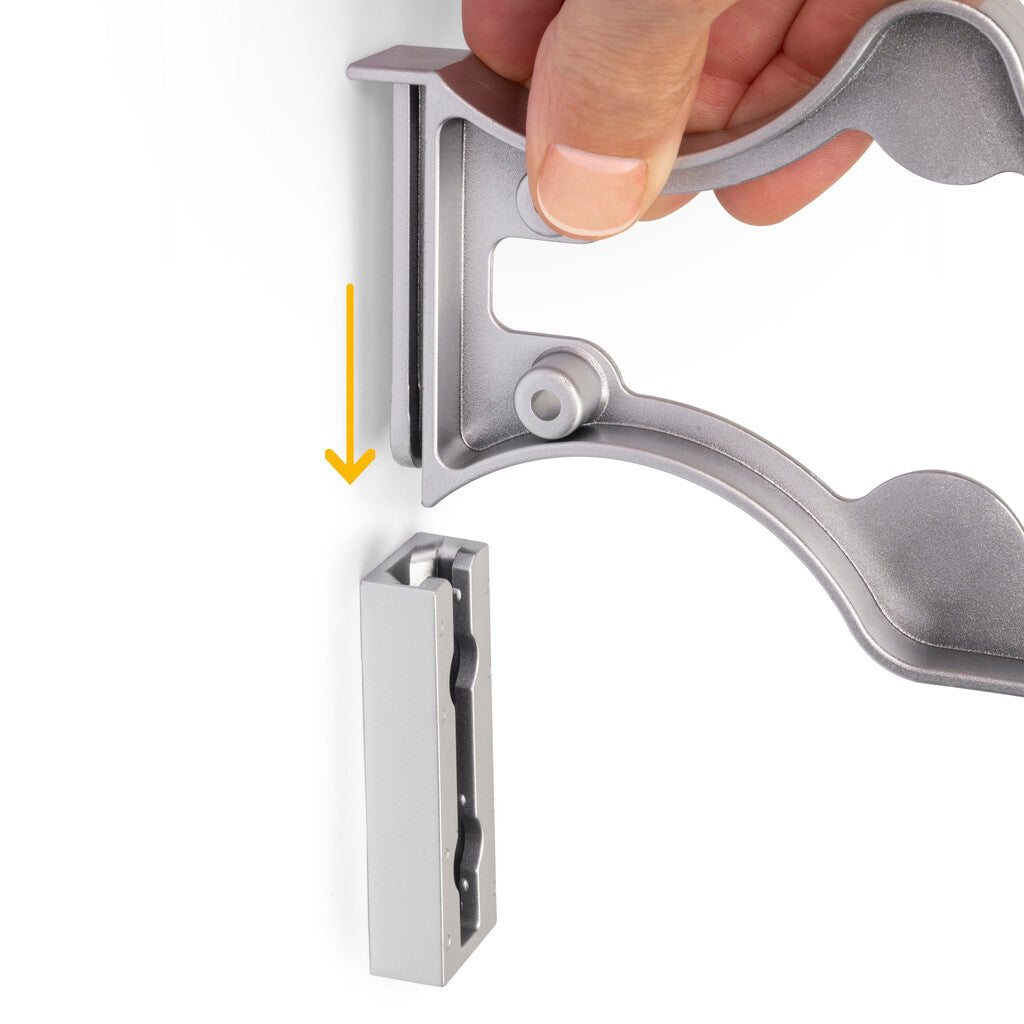 - Prodotto in acciaio cromato e plastica con finiture grigio metallizzato.