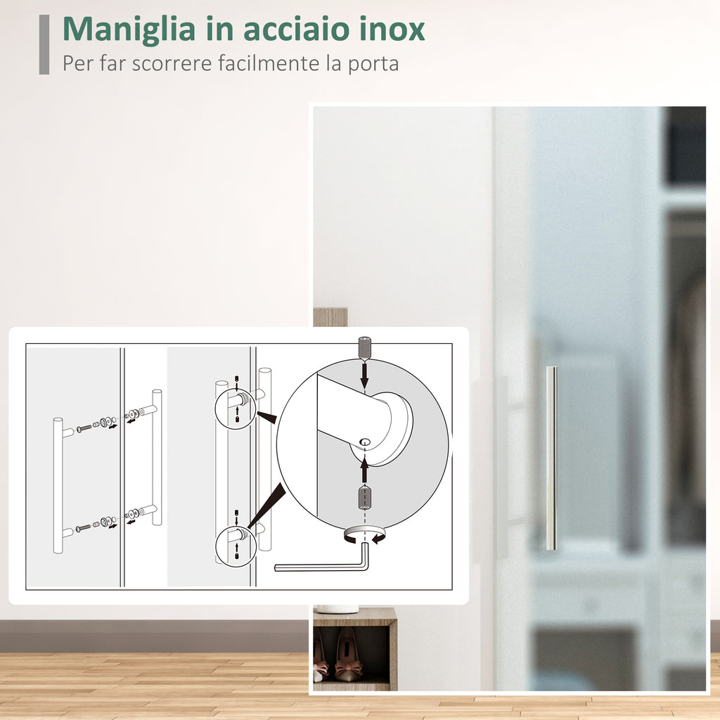 Porta Scorrevole Vetrata 77,5x205 cm Temperata Smerigliata con Binario Silenzioso