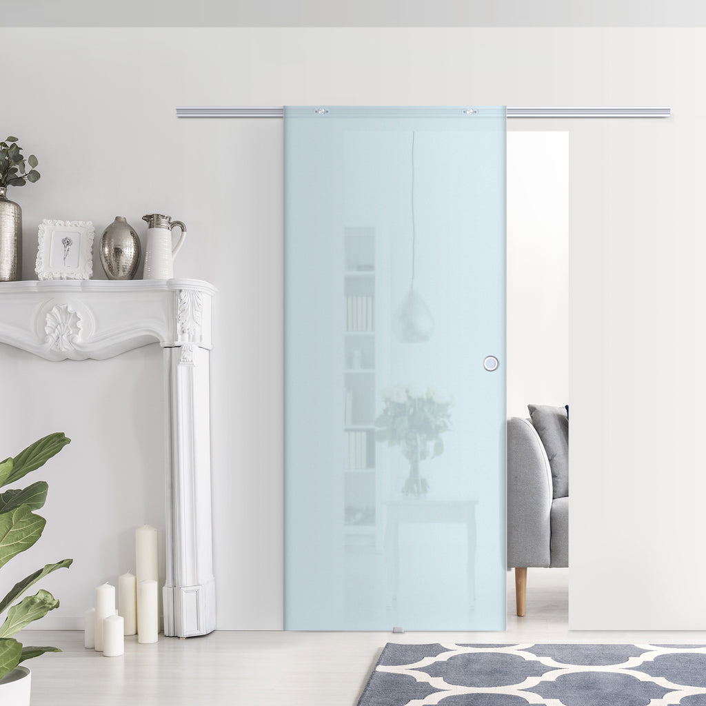 Porta Scorrevole Vetrata 90x205 cm Smerigliata con Binario in Alluminio