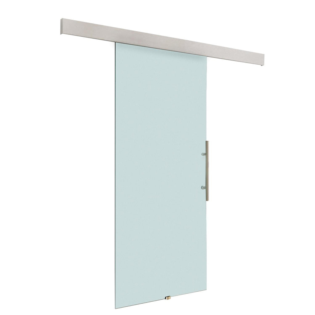 Porta Scorrevole Vetrata 90x205 cm Temperata Satinata con Binario in Alluminio