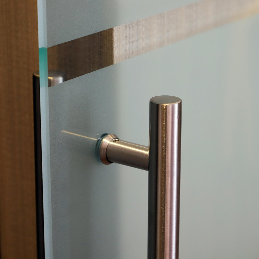 - La porta scorrevole è reversibile: per invertire il senso di apertura basta ruotarle di 180 gradi sull'asse verticale. Le maniglie in acciaio inox opaco sono presenti su entrambi i lati.