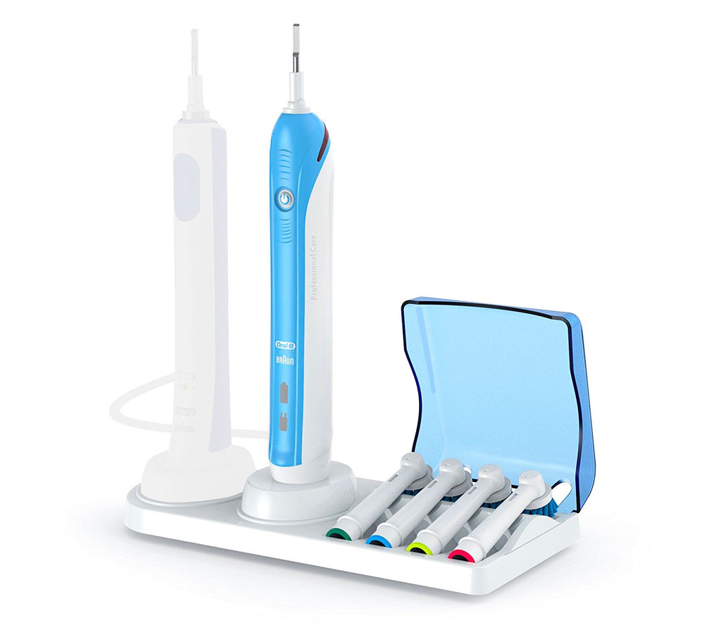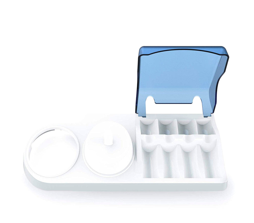 E' facile da utilizzare e da collocare ovunque nel tuo bagno, è compatibile con la maggior parte degli spazzolini elettrici e testine. Ha un vano con sportellino per 4 testine, con un socket in più per poter inserire una base con ricarica (non inclusa).