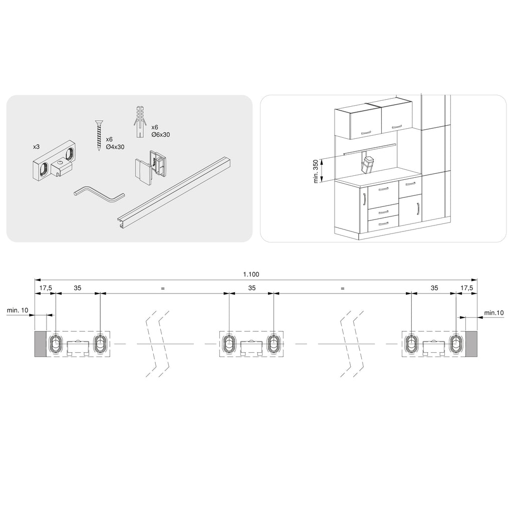 - Ripiani per barattoli spezie da appendere a un profilo in alluminio.
