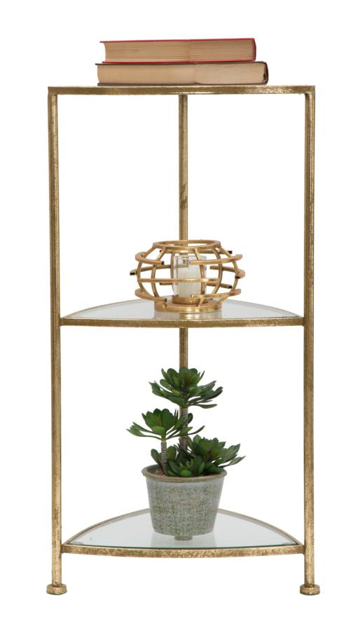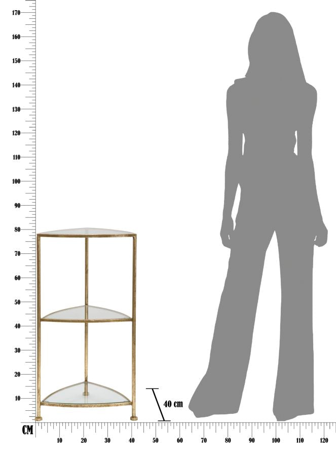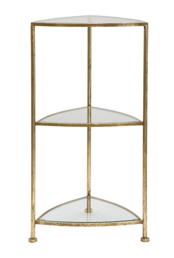 Porta Telefono 3 Ripiani Triangle 41,5x40x80,5 cm in Ferro e Vetro Oro