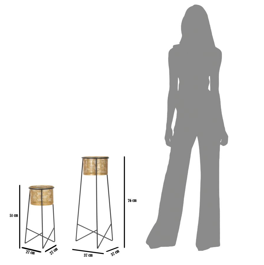 Porta Vasi Coppia Exy Ø37x76-27x51 cm in Ferro Oro e Nero
