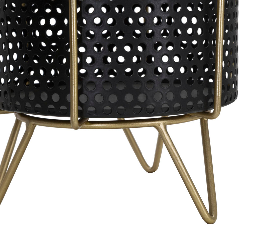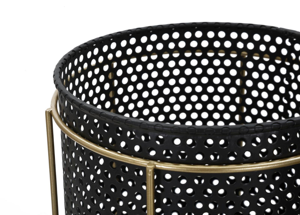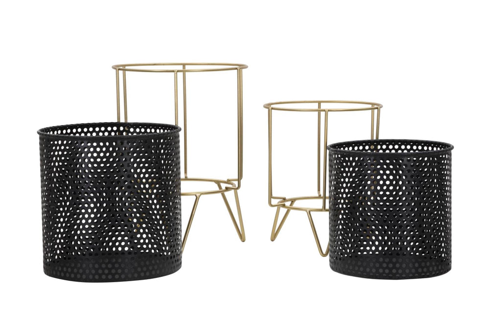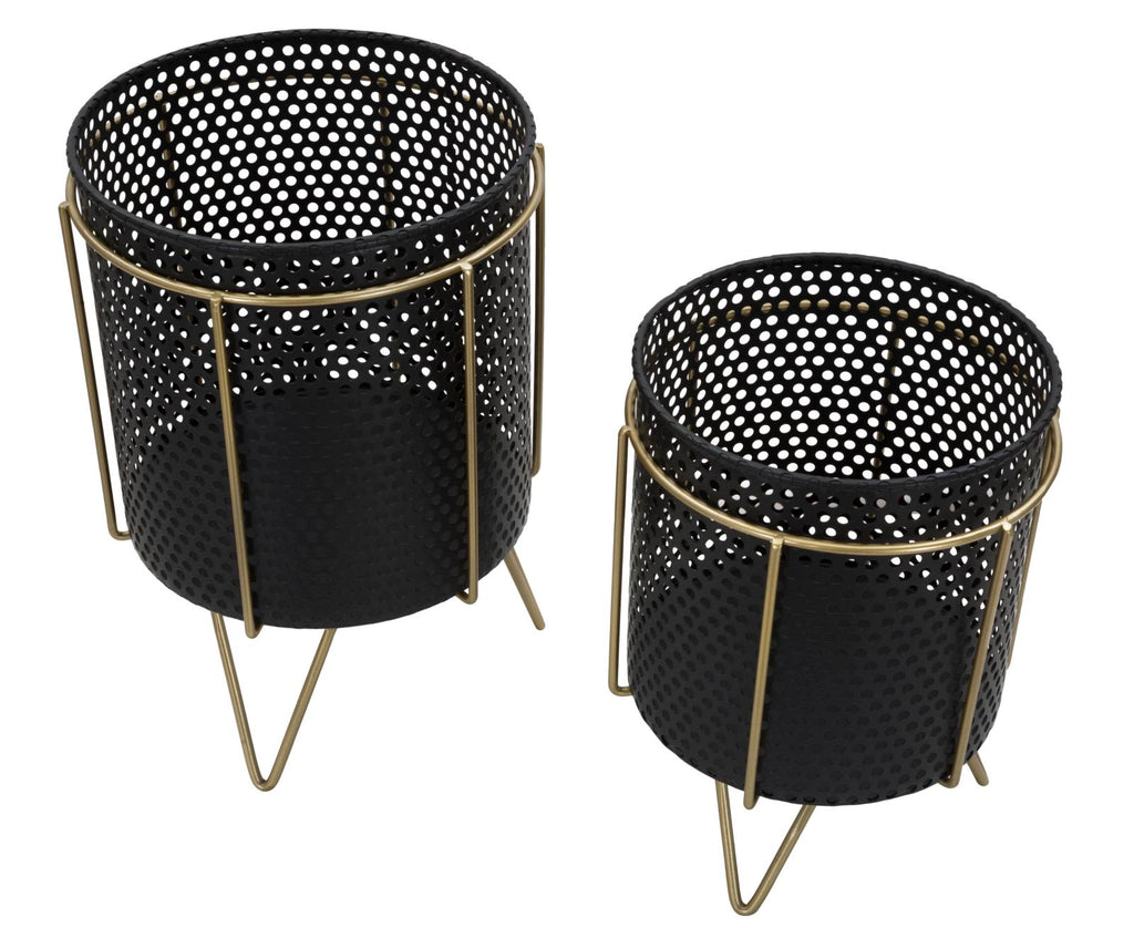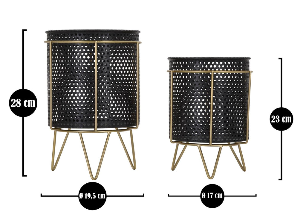 Porta Vasi Fashion Coppia Ø19,5x28-17x23 cm in Ferro Nero e Oro