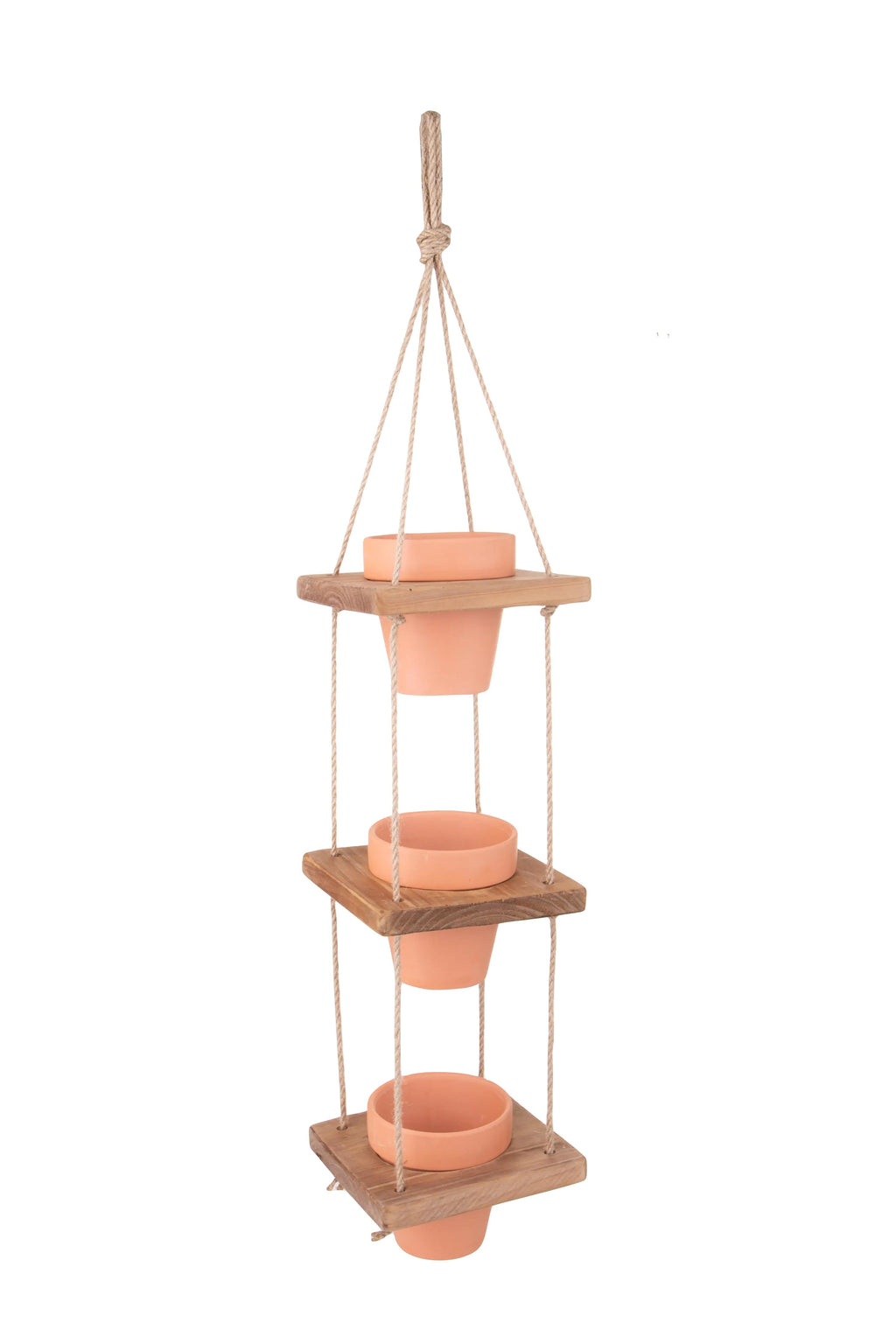 Porta Vasi Legno per 3 Vasi 15x15x H 80 cm