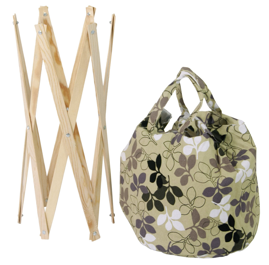 Portabiancheria richiudibile in Pino verniciato con sacco in cotone profondo 50 cm