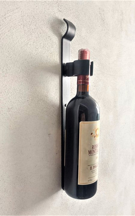 Porta bottiglie da parete dal design minimalista per evidenziare e valorizzare al massimo la bottiglia di vino che sembrerà sospesa alla parete. Progettato specificamente per contenere bottiglie di vino classiche e per adattarsi a una varietà di ambienti, inclusi quelli rustici come le taverne, ma può anche completare ambienti moderni. La costruzione in acciaio e la verniciatura epossidica contribuiscono a garantire una lunga durata nel tempo. Prodotto interamente Made in Italy.