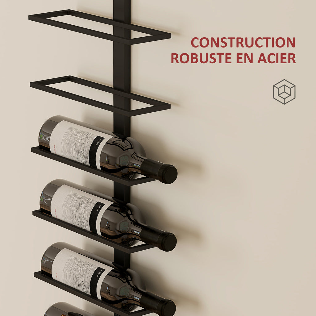 Portabottiglie da Parete per 10 Bottiglie 27x10x116 cm in Acciaio Nero