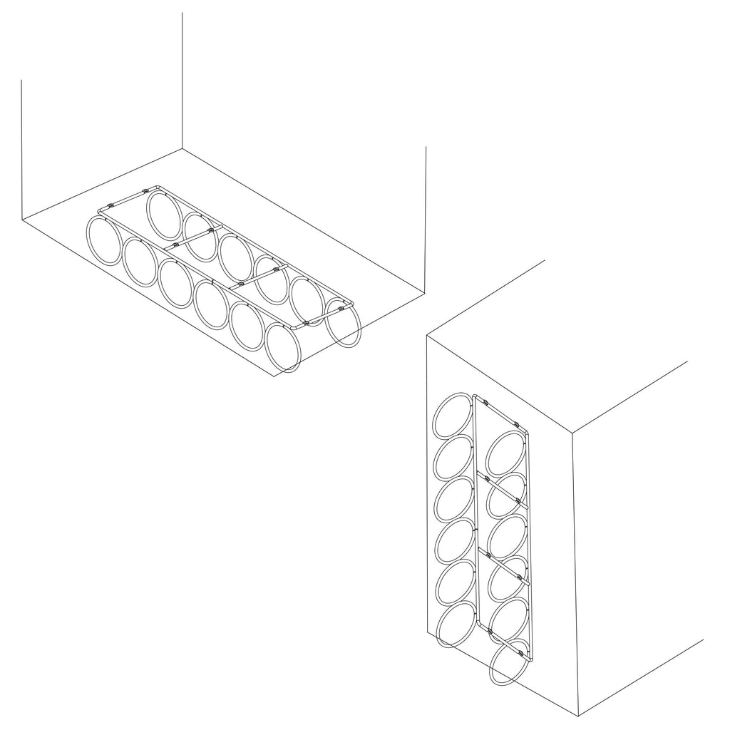 - Portabottiglie con sei fori per l'installazione all'interno o all'esterno dei mobili, sugli scaffali o sotto i banconi.
