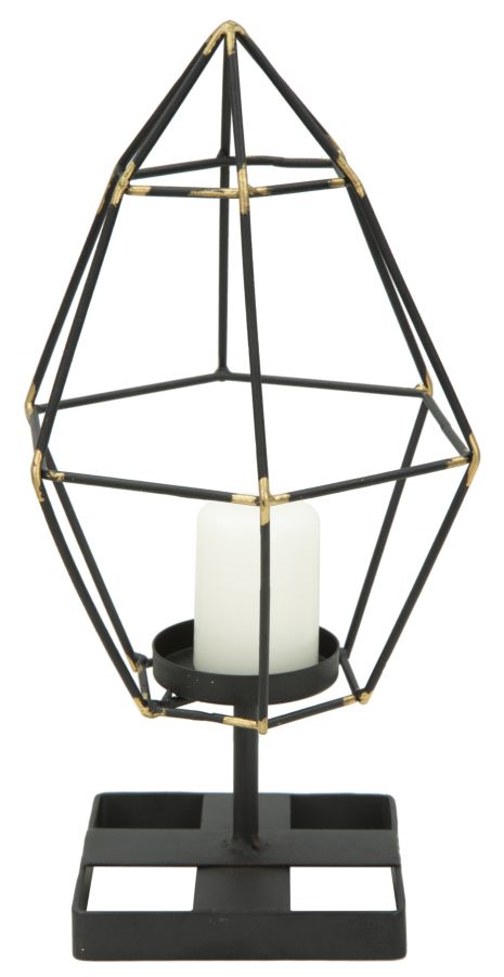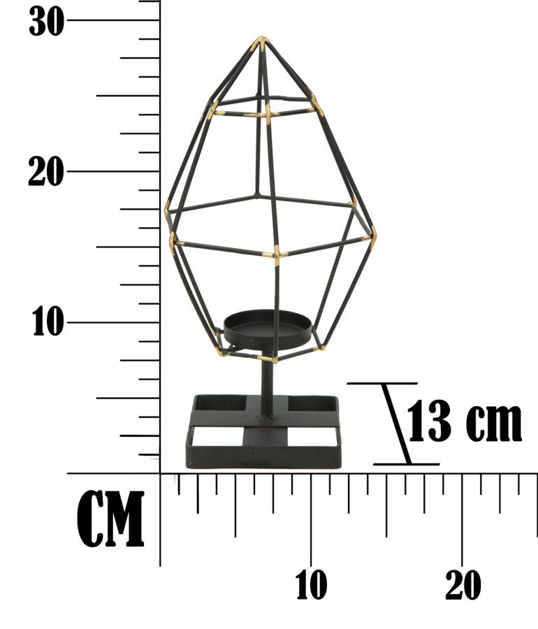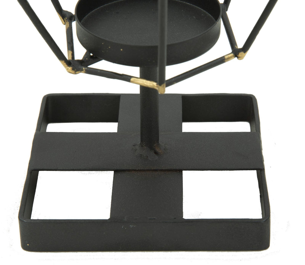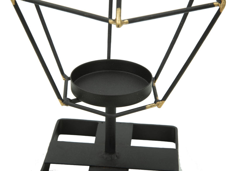 Portacandele Bright Piramid 15x13x29 cm in Ferro Nero e Oro