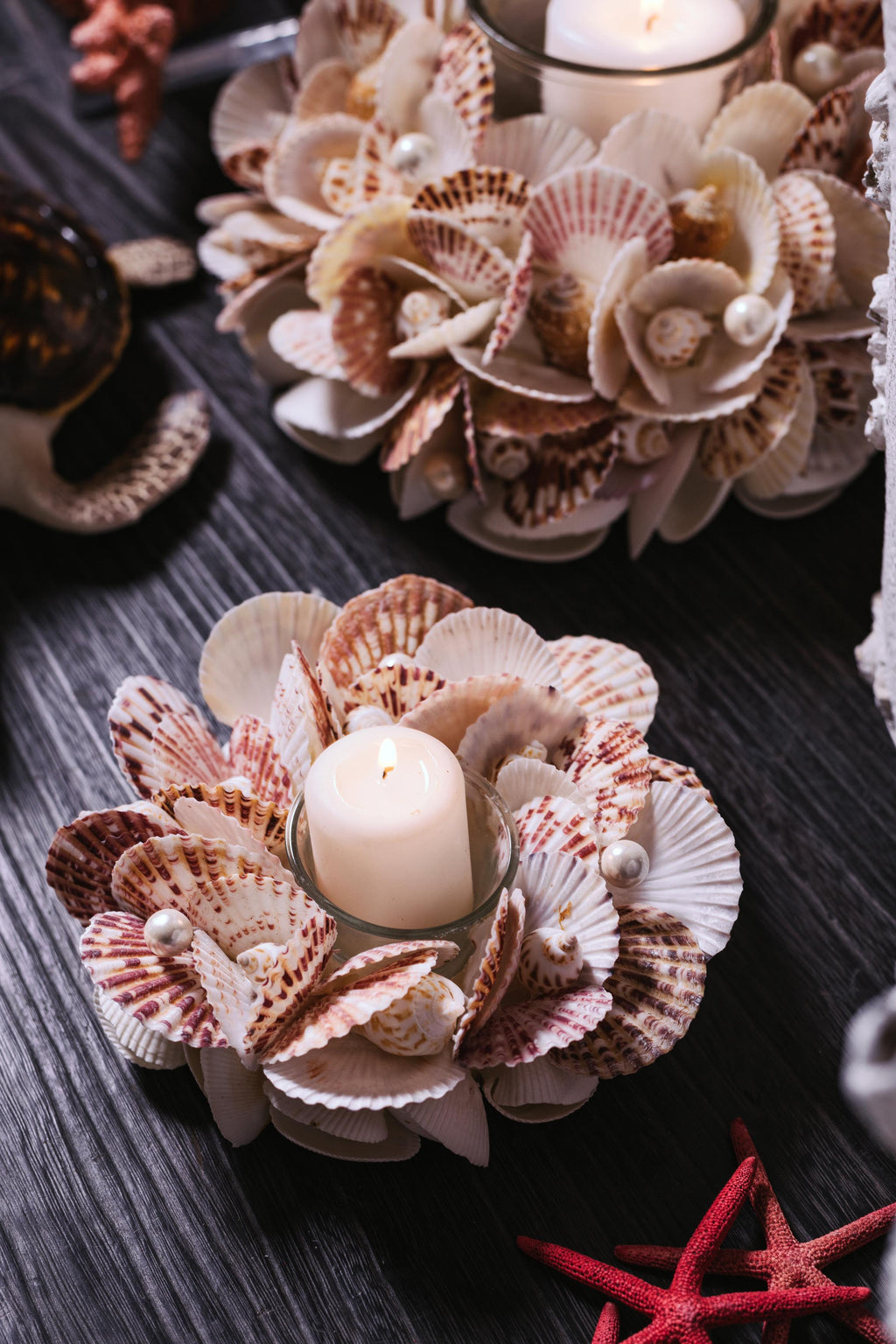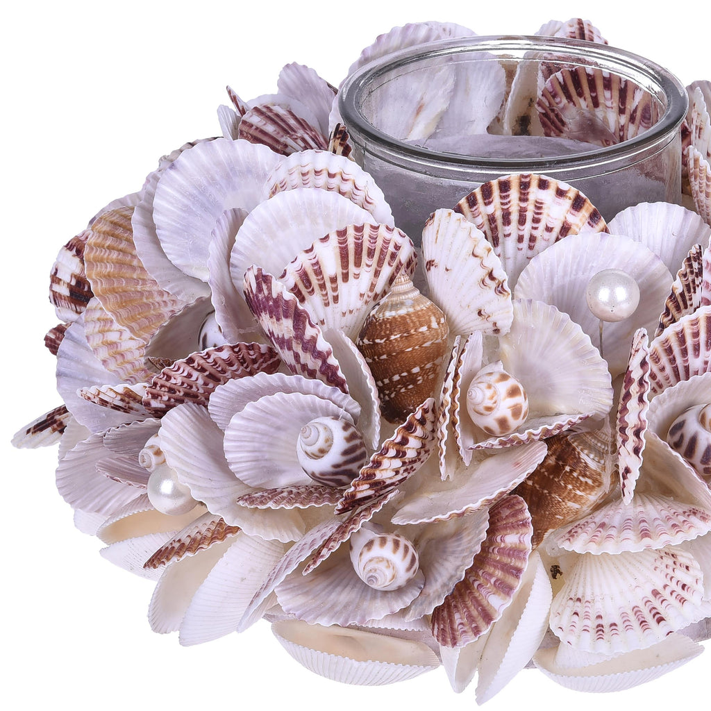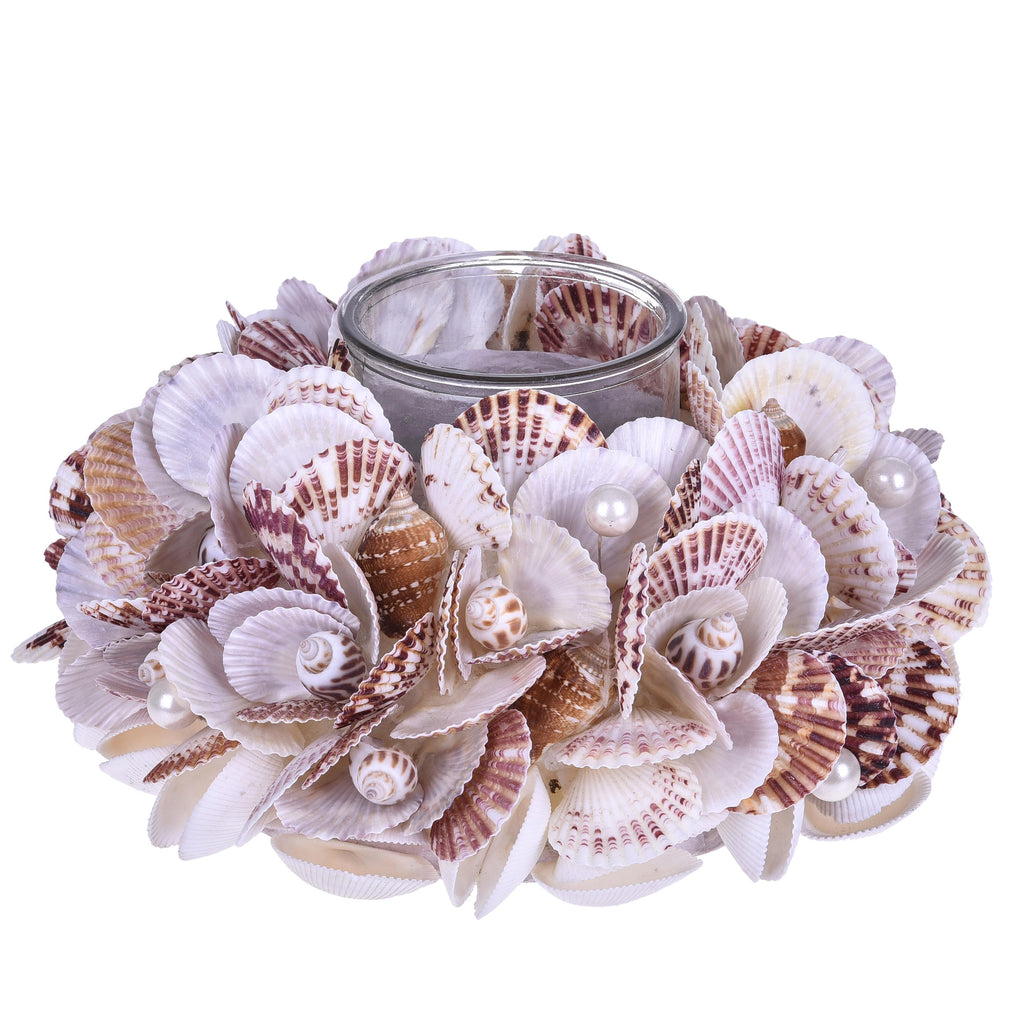 Portacandele Con Conchiglie. Diametro 27 Cm
