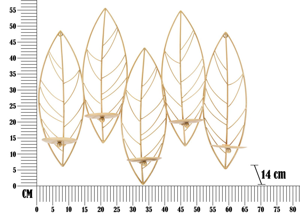 Portacandele da parete in metallo dorato dal design che richiama una serie di foglie. Può contenere 5 candele.