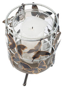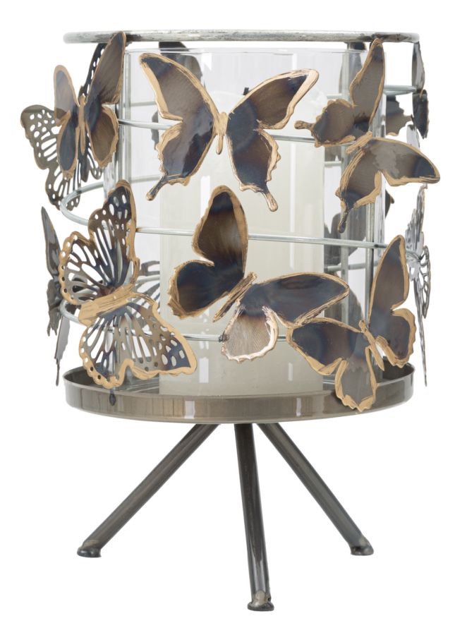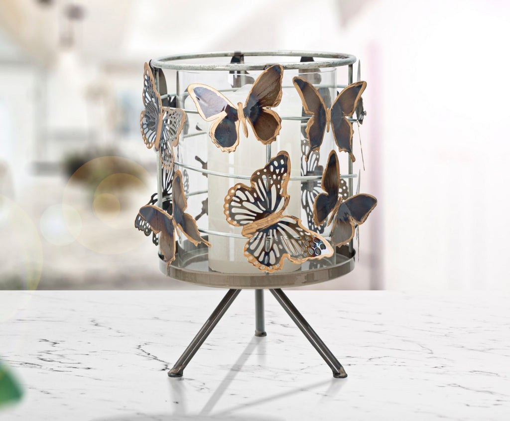 Portacandele in metallo e vetro con spirale di farfalle con un particolare design che rende speciale ogni ambiente.