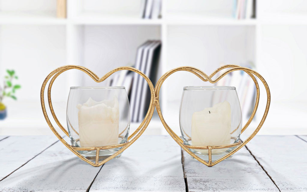 Portacandele Heart 27,5x9,5x12,5 cm in Ferro e Vetro Oro
