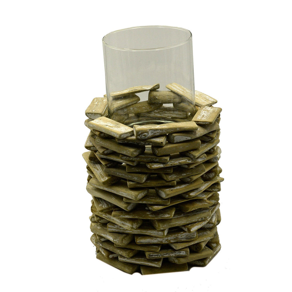 Portacandele in Legno sbiancato tondo 1p cm Ø18xh31,5