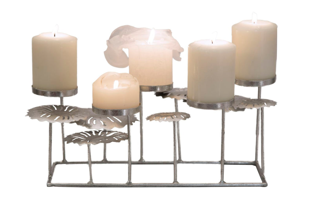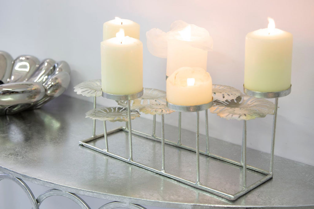 Portacandele in metallo color argento. Il design ispirato alla natura dona un tocco di personalità alla tua casa. Le candele creano un'atmosfera intima e rilassante, i portacandele argentati decorano con gusto e raffinatezza ogni ambiente.