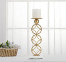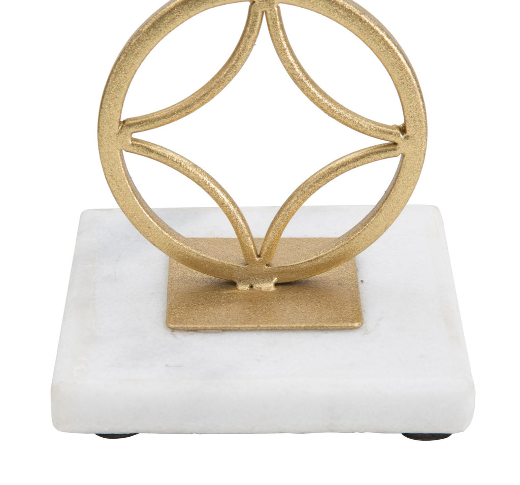 Elegante portacandele in metallo dorato con base in marmo. Il design geometrico dona in tocco di classe ad ogni ambiente.