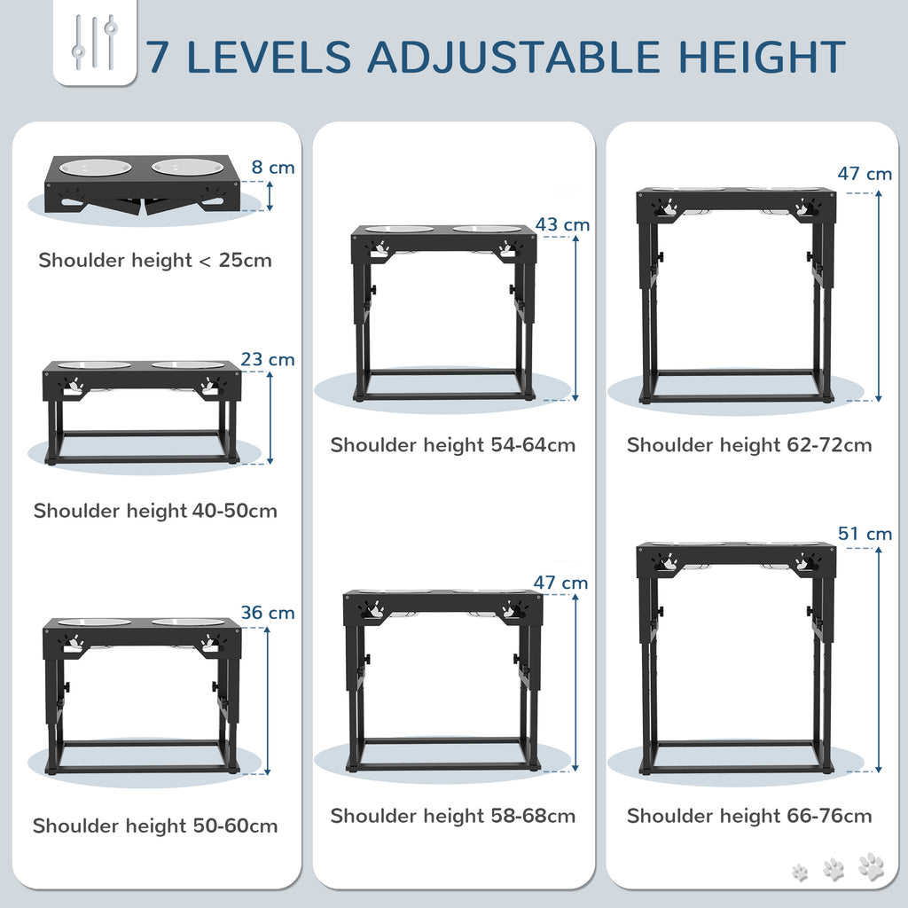 Portaciotole per Cani a 7 Altezze Regolabili 44x27x51 cm con 2 Ciotole Rialzate Ø19x6 cm in Acciaio Nero