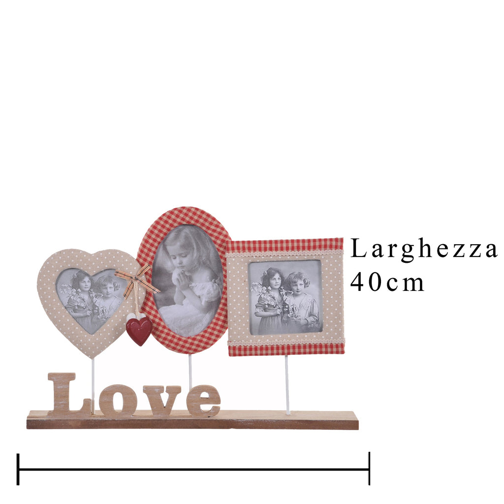Portafoto Da Tavolo Con Cuori X 3. Altezza 40 Cm