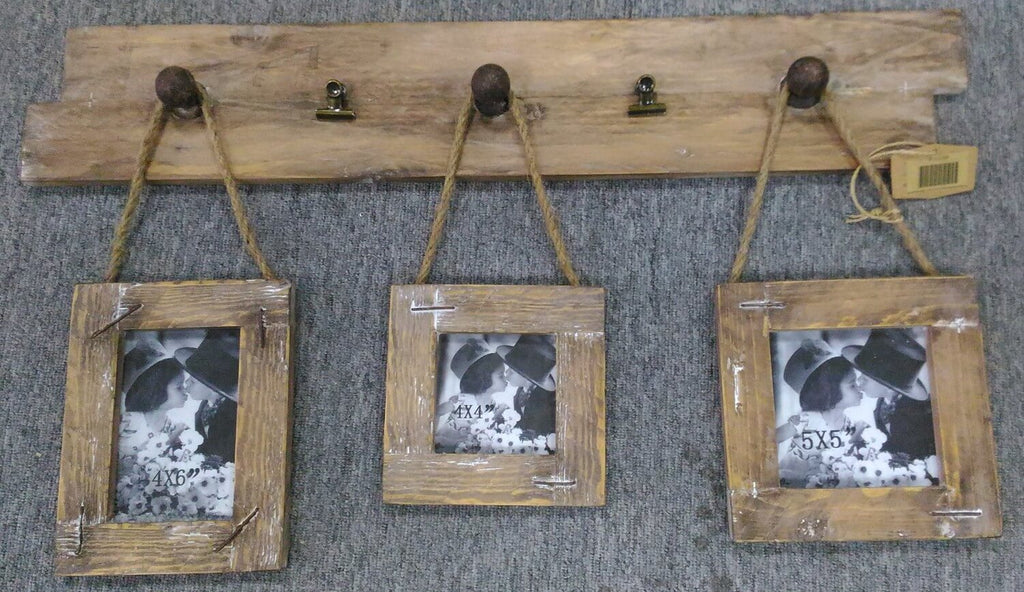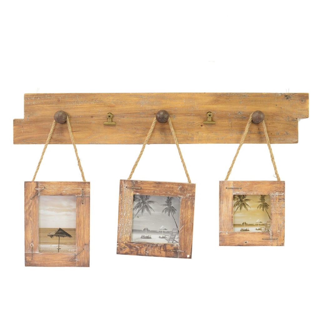Portafoto Muro Legno C/Portamemo E Appendino 3P Multiplo 3P cm73X42X6