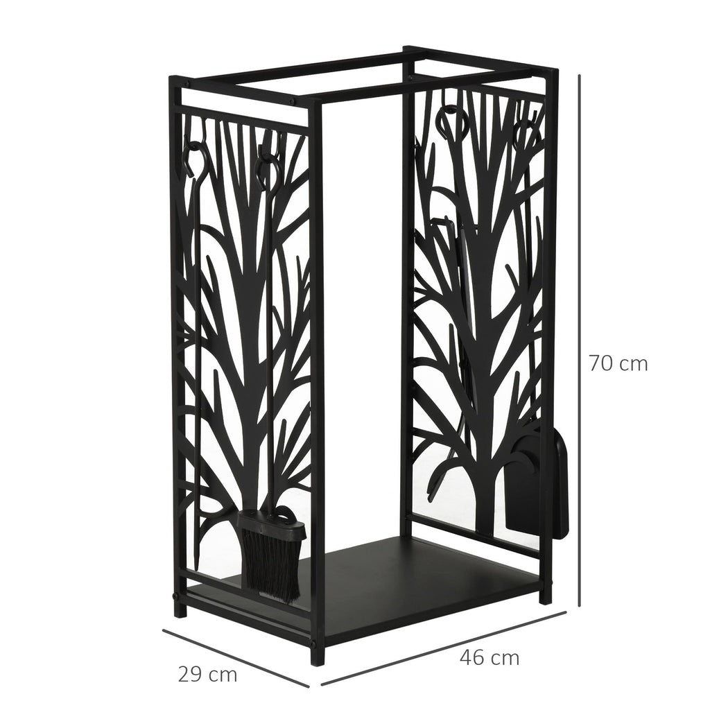 Portalegna Legnaia 46x29x70 cm in Acciaio con Attrezzi Nero