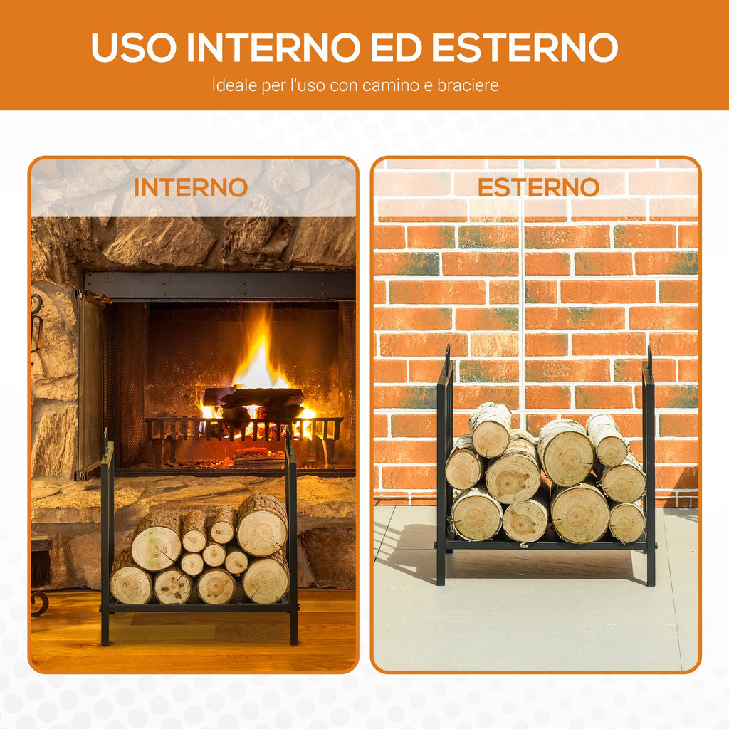 Portalegna per Camino 42x32,5x46 cm in Metallo Nero