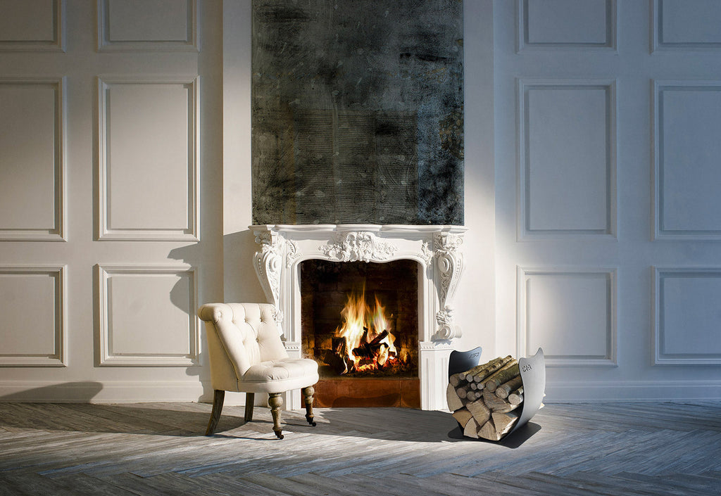 Portalegna per Camino da Interno 400x375x345 cm in Acciaio Crea Onda Nero