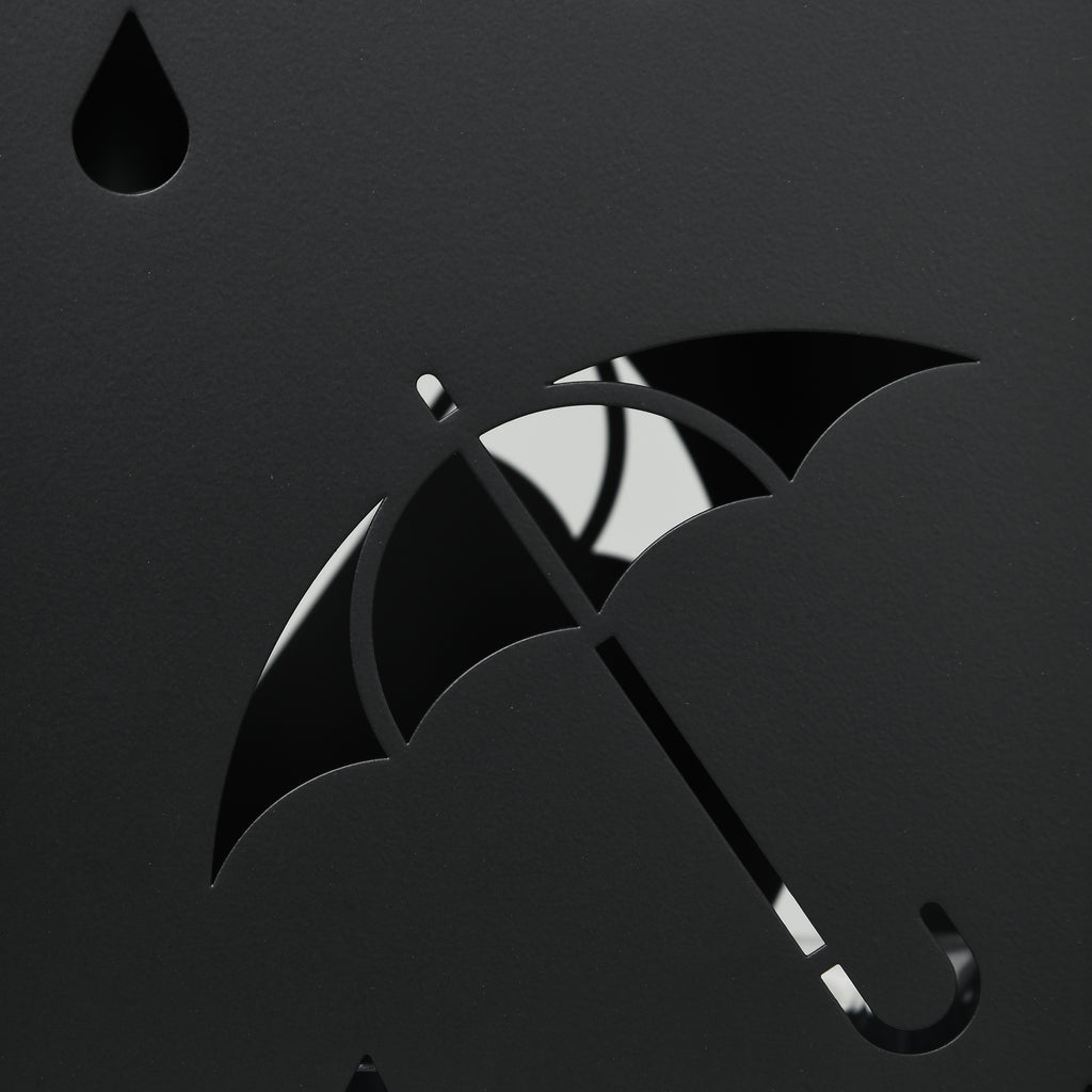 Trova spazio a ogni tuo ombrello in questo portaombrelli in acciaio . Dal design semplice e con finitura nera, si inserisce ottimamente in ogni ambiente. Ti consente di riporre fino a 5-6 ombrelli ed è dotato di 4 ganci per appendere quelli più piccoli. Gli intagli a forma di ombrello aggiungono un tocco decorativo e assicurano il passaggio dell'aria, mentre la vaschetta sul fondo raccoglie l'acqua in eccesso ed evita che vada sul pavimento.