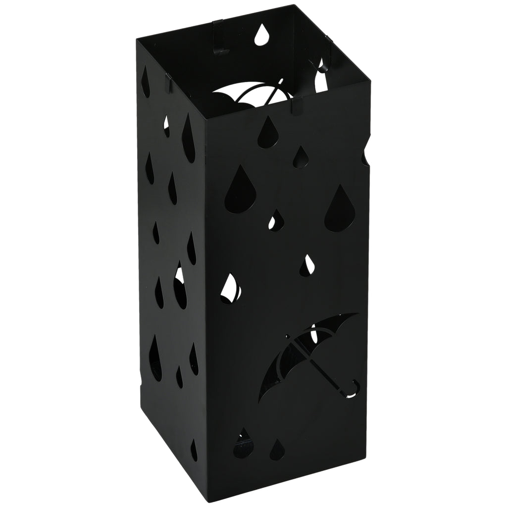 Portaombrelli con 4 Ganci e Vaschetta Raccogligocce 15,5x15,5x41 cm in Metallo Nero