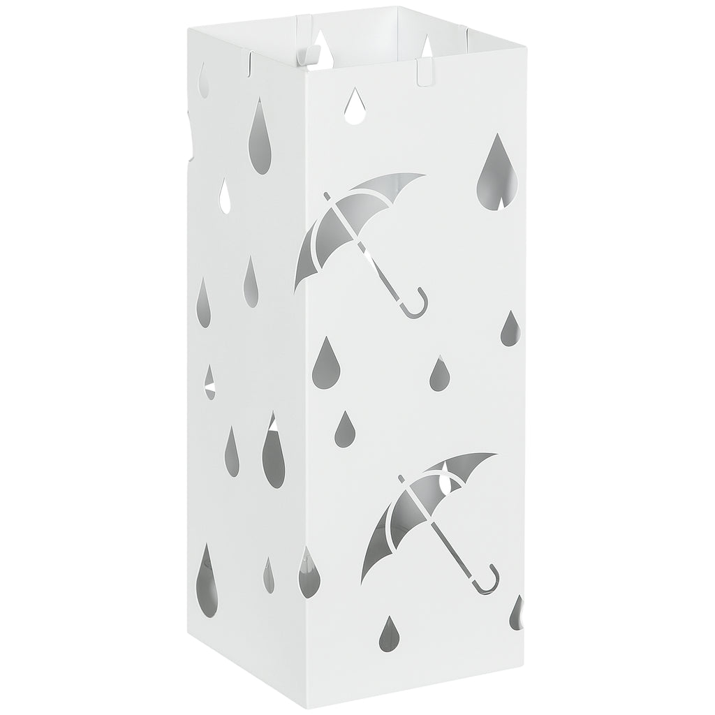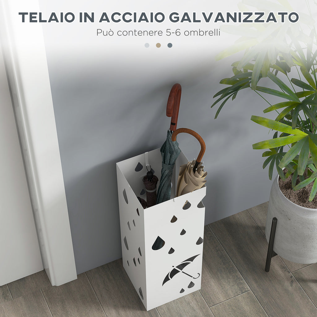 Portaombrelli con 4 Ganci e Vaschetta Raccogligocce 15,5x15,5x41cm in Metallo Bianco