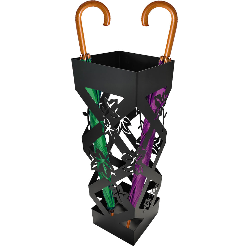 Portaombrelli da Ingresso Design Floreale Quadrato 15,5x15,5x49 cm in Ferro Nero